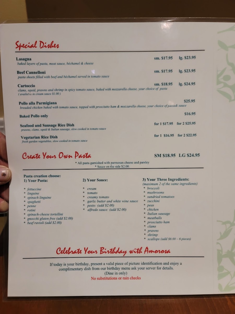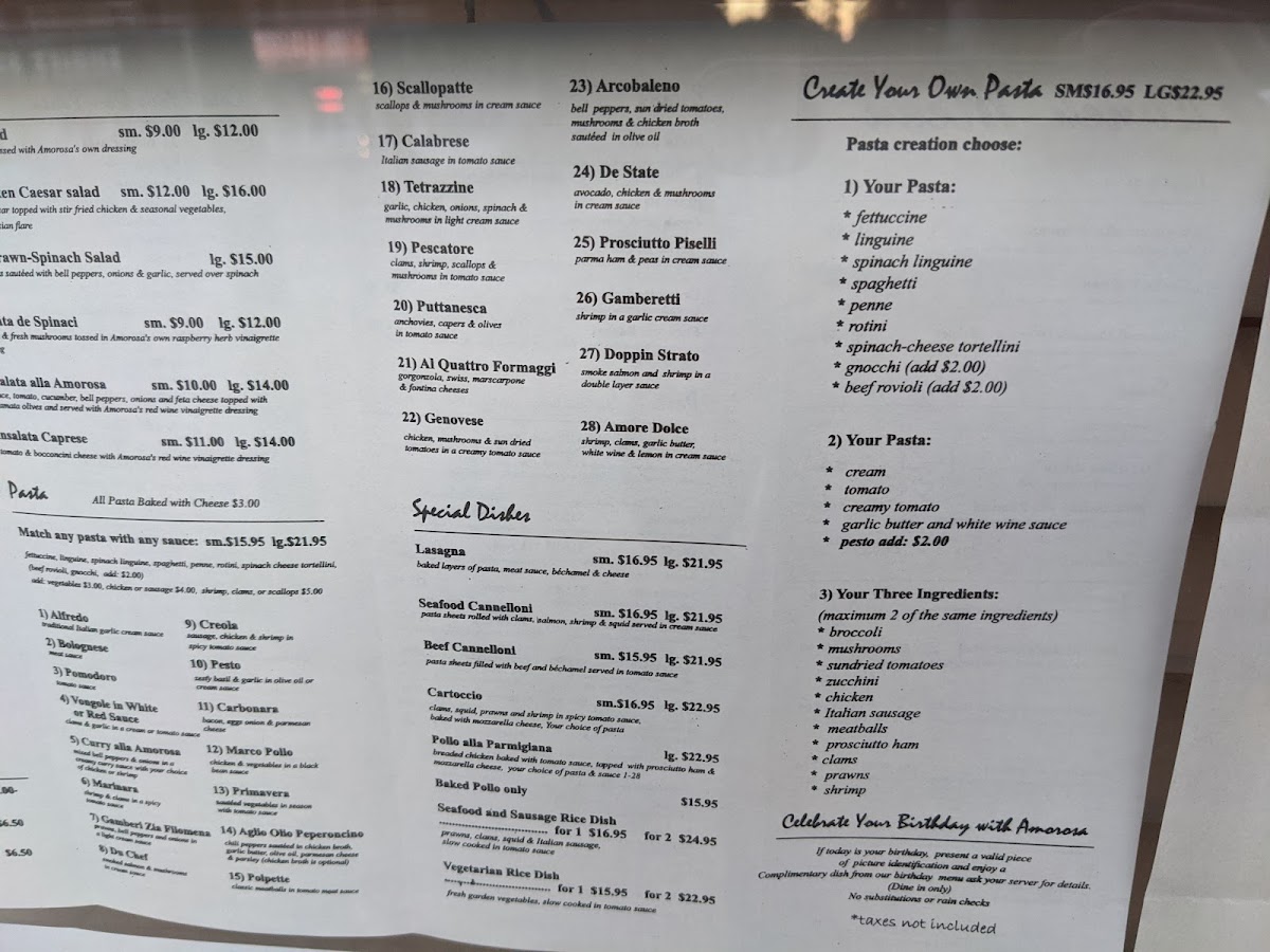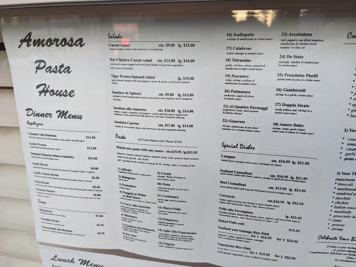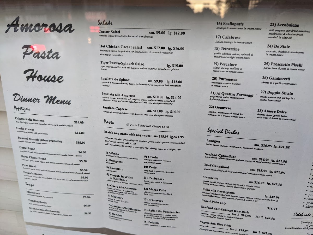 Amorosa Pasta House Menu
