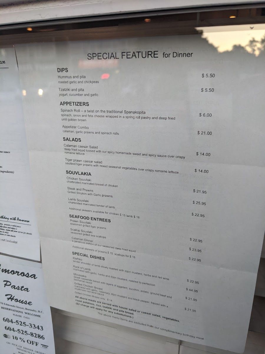The menu boasts an array of offerings, from the Tiger Prawn Spinach Salad to the savory Calamari Dinner, ensuring a flavorful journey in every bite. Pastas are particularly noteworthy, with guest reviews praising their delicious sauces and ample servings. For a special treat, don't miss the Scallop Souvlaki and Hot Chicken Caesar Salad, both infused with unique twists and vibrant flavors.
